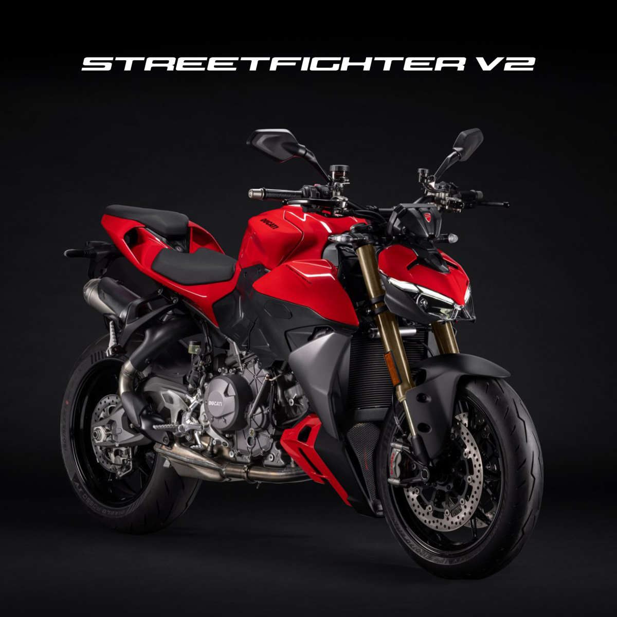 Unikalny funbike stworzony dla osób, które szukają uniwersalnego jednośladu do codziennej jazdy i zabawy na torze. Motocykl został wyposażony w podwozie i nowy silnik ze sportowego modelu Panigale V2. Moc 120 KM w zestawieniu z masą zaledwie 175 kg (z płynami, bez paliwa) sprawia, że Streetfighter V2 zachwyca lekkością i zwinnością prowadzenia przy zachowaniu stabilności przy dużych prędkościach.